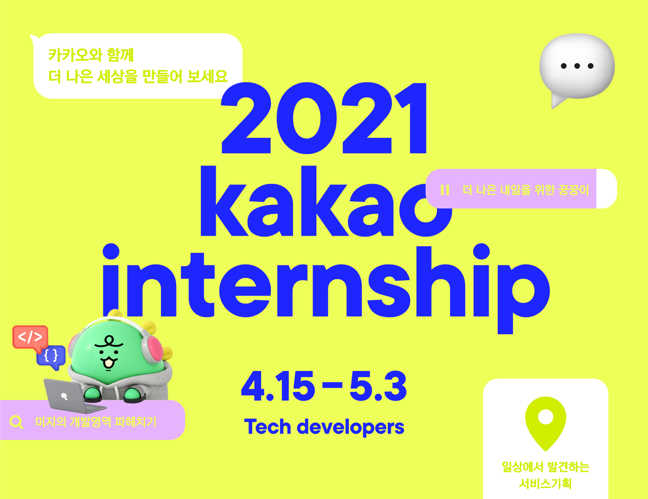 | [카카오] 2021 Tech developers 채용연계형 인턴 서류 합격 + 지원분야 설명회 후기 (0) | 2022.01.09 |