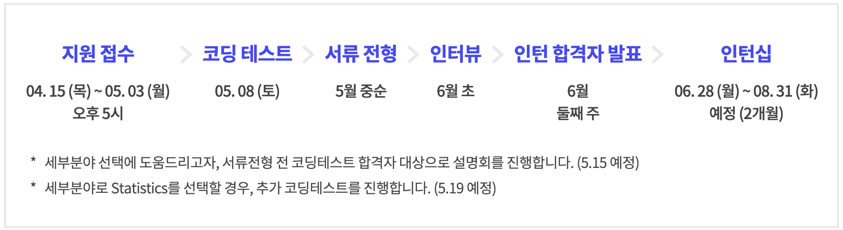 * 코딩테스트 합격자에 한해 추후 세부분야 결정