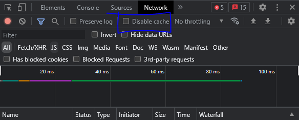 그러면 상단에 Disable cache가 있는데 이를 체크하면 된다.