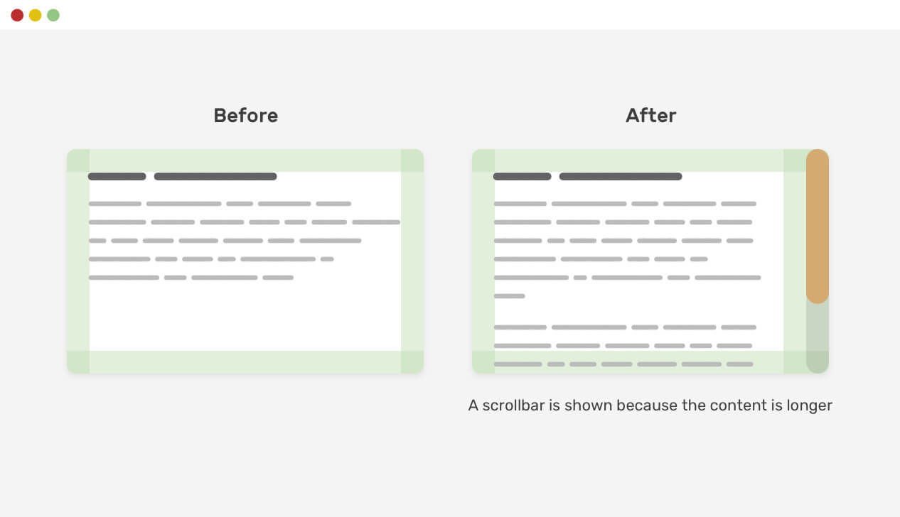 스크롤바가 생길 때 스크롤바의 크기만큼 컨텐츠 영역이 줄어들게 된다.