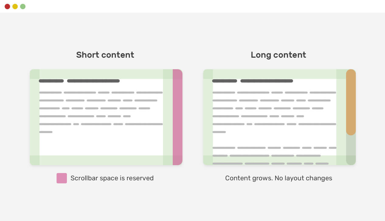 이를 방지하기 위해 scrollbar-gutter를 stable로 설정하면 스크롤 자리를 미리 확보해놓을 수 있다.