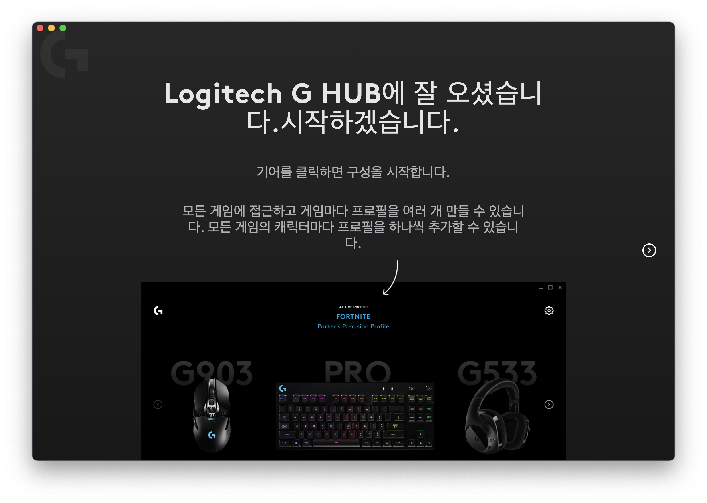 로지텍 G HUB는 제품의 활용도를 높여주는 새 소프트웨어입니다. 게임별로 기어를 빠르게 개인화할 수 있습니다.